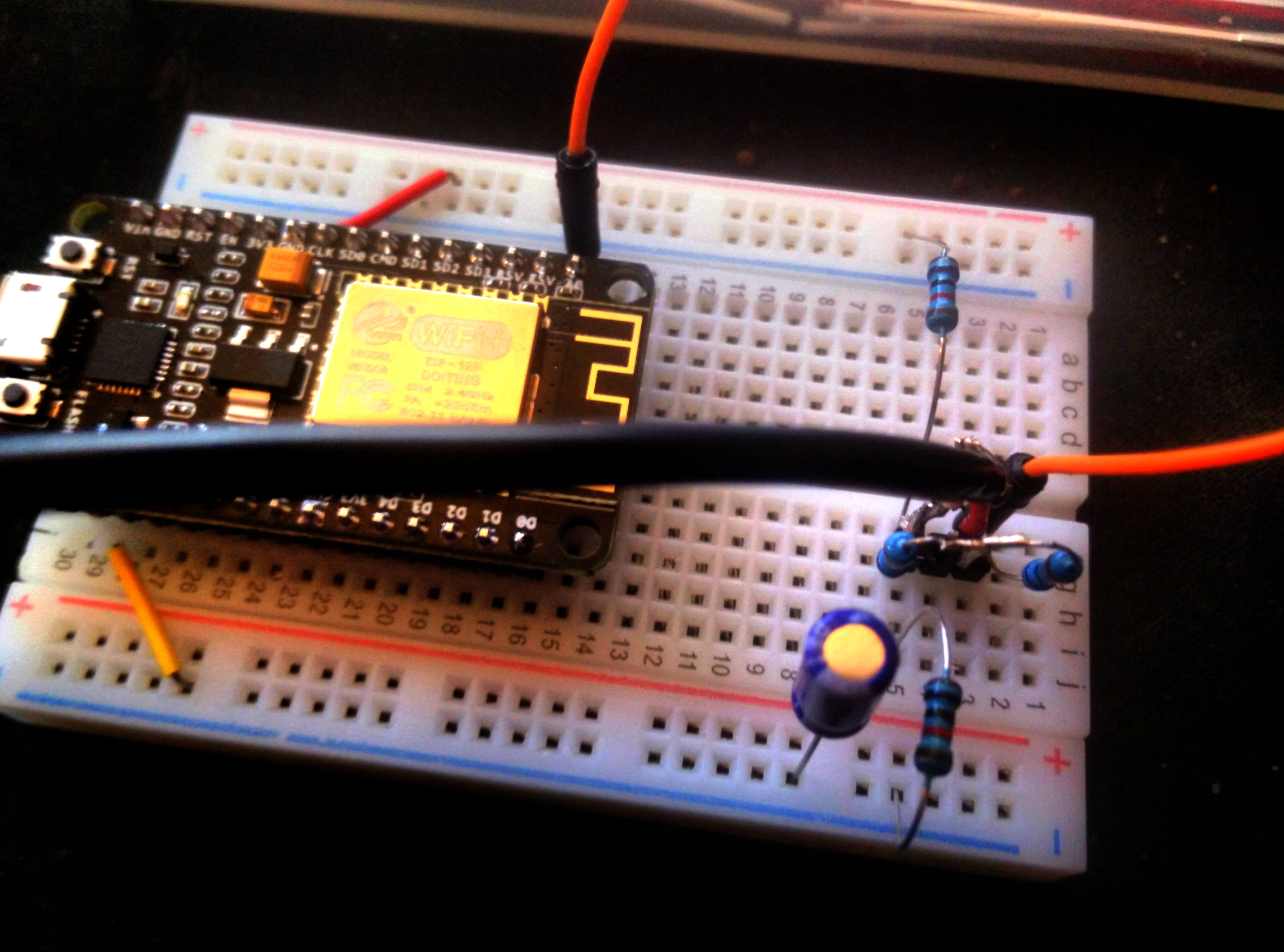 The circuit diagram for this shows that we need a burden resistor to reduce the output voltage so it can be used with our module. In this case my module uses 3.3V logic levels, so using this burden calcuator the recommended Resistor size is 23 Ohms, however if you dont have the exact right one, go for a resistor smaller than the calculated one in order to prevent a higher voltage damaging your ESP module. In my case I used two 10 Ohm resistors in series to give me 20 Ohms.